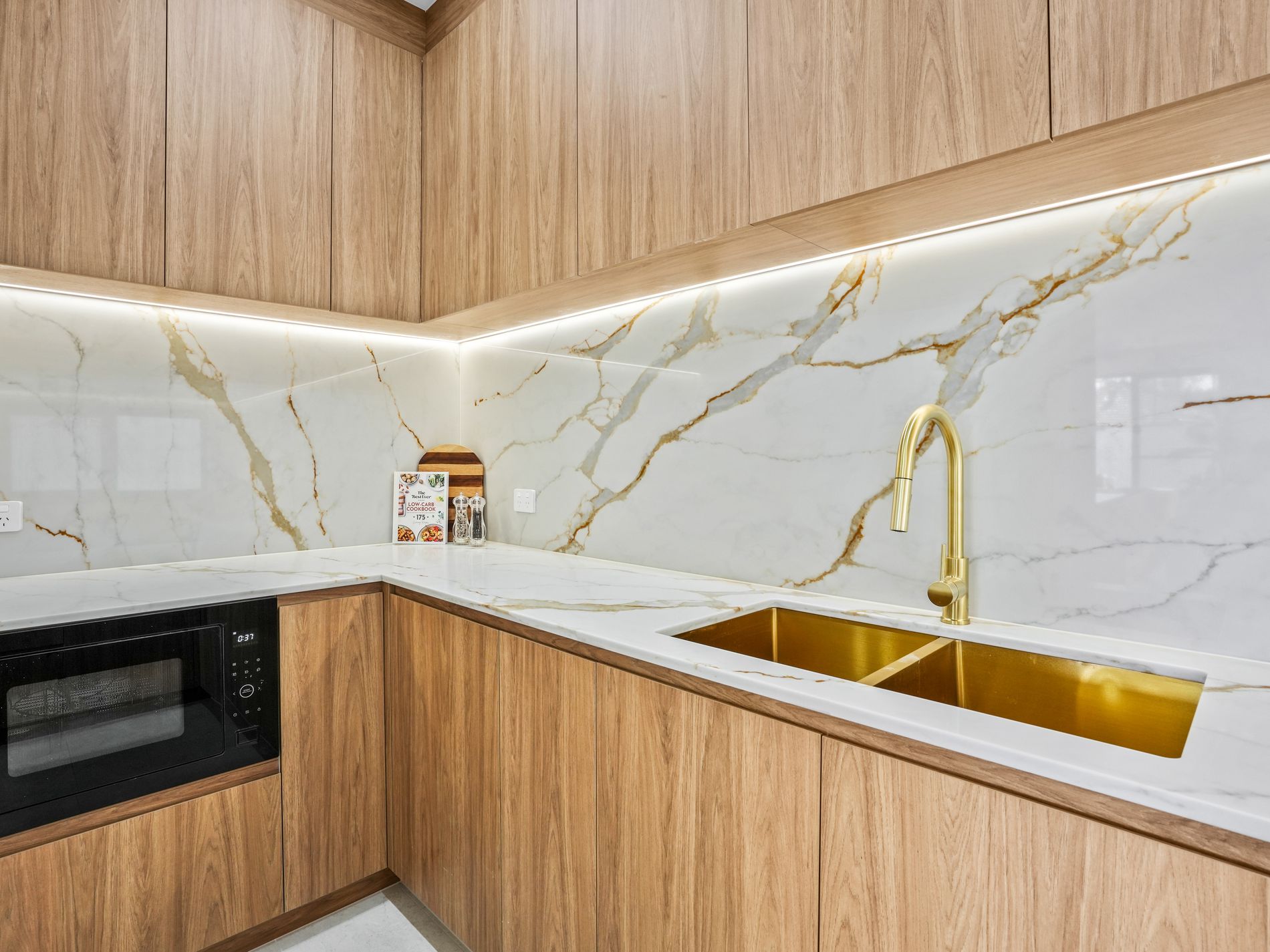- Gourmet kitchen with stone benchtops, gas cooking & butler’s pantry