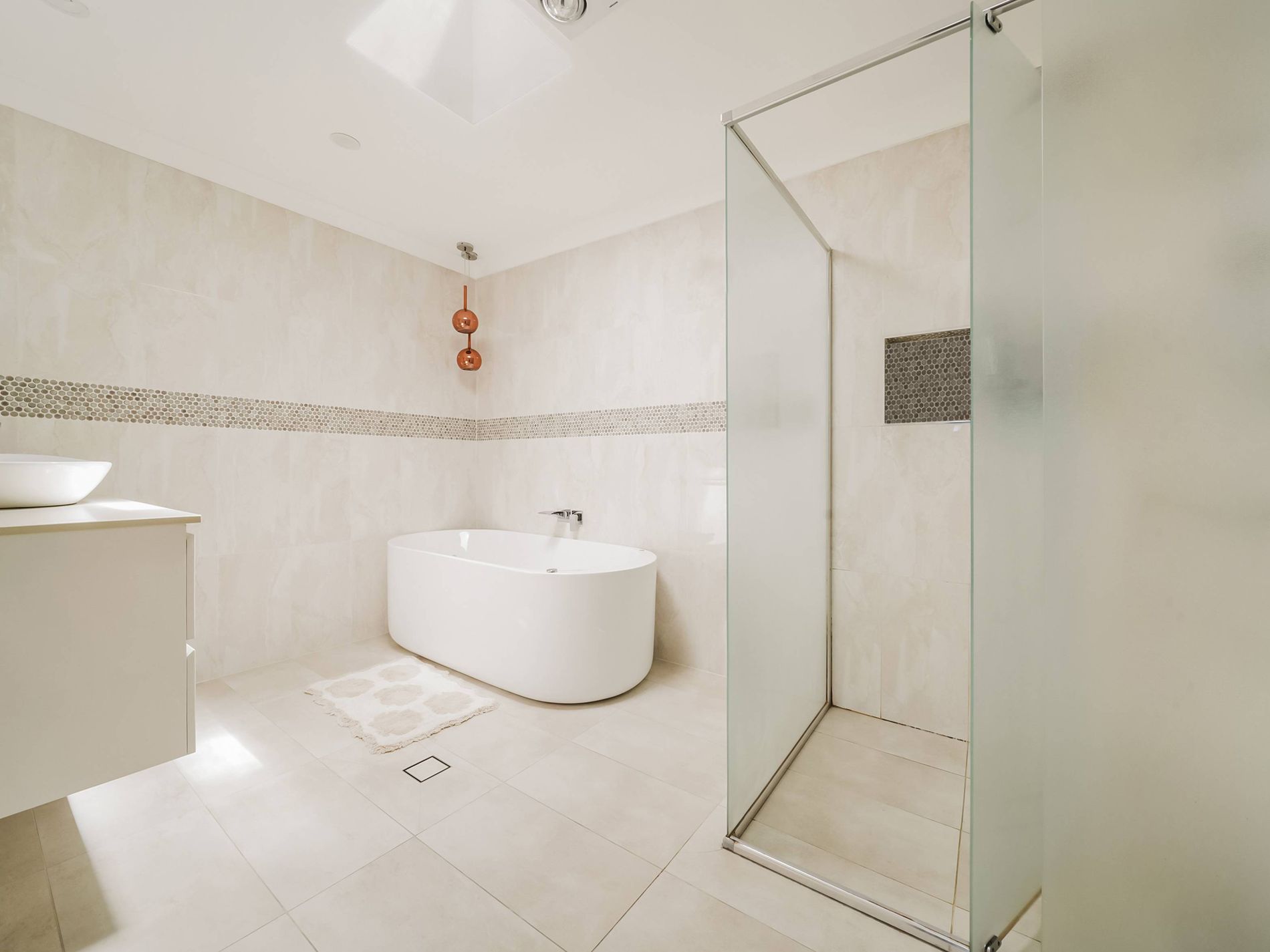 - Stylish tiled flooring throughout